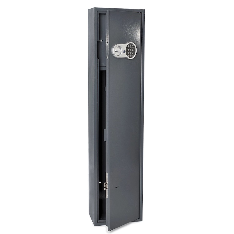 Внешние размеры (ВхШхГ, мм): 1412 х 260 х 260 Внутренние размеры (ВхШхГ, мм): 1398 х 258 х 239 Тип замка: ключевой Вес (кг): 24 Объем (л): 86 Количество стволов: 4 Касса: 1 максимальная высота ружья (мм): 1260 Страна производитель: Украина Основные характеристики: • толщина металла двери, мм: 2,4 • комплектуются ключевым сувальдным замком • ригельная система запирания (2 хромированных вращающихся ригеля) • цвет корпуса сей..