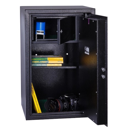 Зовнішні розміри (ВхШхГ, мм): 300 х 380 х 320 Внутрішні розміри (ВхШхГ, мм): 296 х 376 х 264 Объем (л): 29. Вага (кг): 15 Кількість полиць: 1Країна виробник: УкраїнаОсновні характеристики:• товщина корпусу - 2 мм• товщина металу дверей - 4 мм• комплектуються електронним кодовим замком MySafe• передбачена можливість анкерного кріплення до підлоги та стіни• ригельна система замикання (2 активних хромованих ригеля, що обертаються діаметром 25 мм)• тип покриття: порошкове покриття, ко..